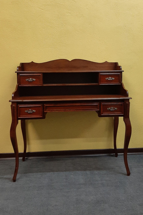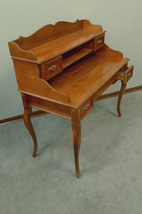 اگر به محصولات چوبی کلاسیک علاقه مند هستید میز تحریر کتابخانه دار مدل WL120 C یک انتخاب مناسب میباشد. با دارا بودن تعداد 5 عدد کشو و شلف و طبقه های متعدد فضای زیادی را در اختیار کاربر قرار میدهد. طراحی میز بنحوی است که علی رغم داشتن کتابخانه، کل صفحه میز قابل استفاده میباشد. متریال چوب ممتاز گرید ++A گرجستانی میباشد. رنگ پلی یورتان ترک. این میز مناسب برای میز تحریر و میز کامپیوتر و میز نوجوان و میز کار میباشد.