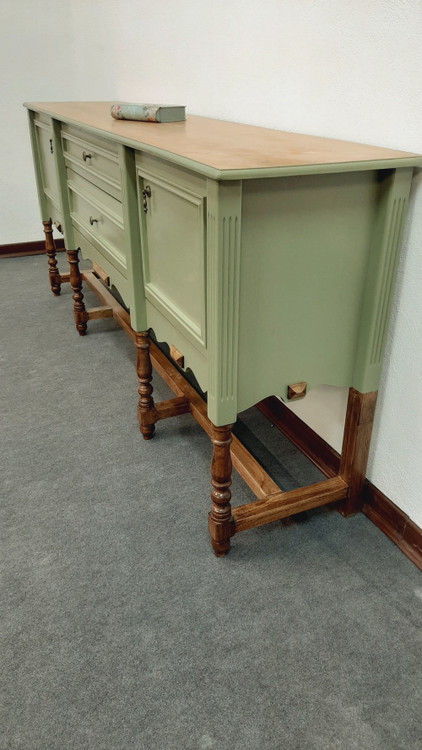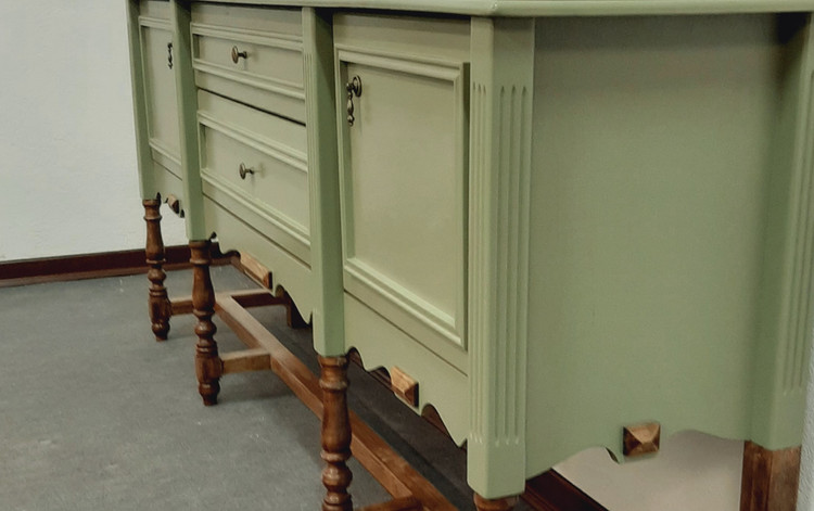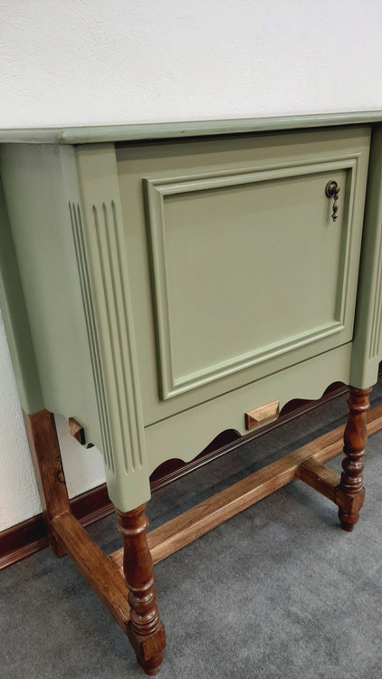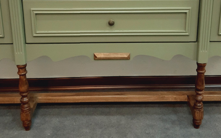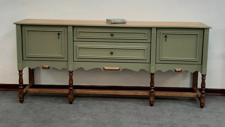 کنسول چوبی کلاسیک با رنگ ترکیبی گردویی و سبز سدری یک کنسول جذاب و کاربردی در فضای پذیرایی و کنار سالنی میباشد. این کنسول چوبی با بهترین متریال موجود به شرح زیر ساخته شده است