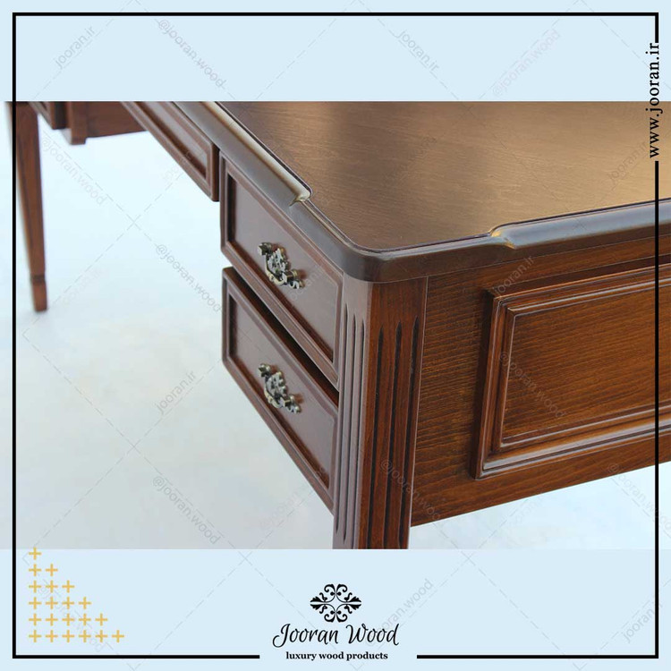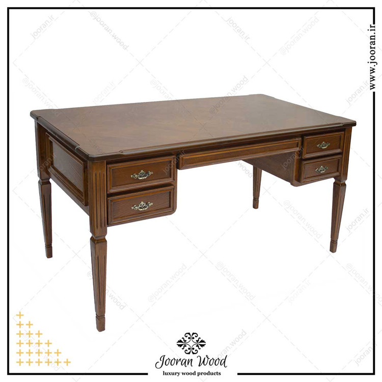 میز تحریر و میز کار چوبی مدل WD150G در صنایع چوب ژوران با بهره گیری از بهترین متریال و چوب های راش ساخته شده است. در ابعاد 150 در 75 سانتی متر و ارتفاع 75-80 سانتی متر . دارای سبک کلاسیک بوده و شما میتوانید به سلیقه خودتان و یا متناسب با سایر دکور منزل یا محل کار رنگ آن را تغییر دهید
